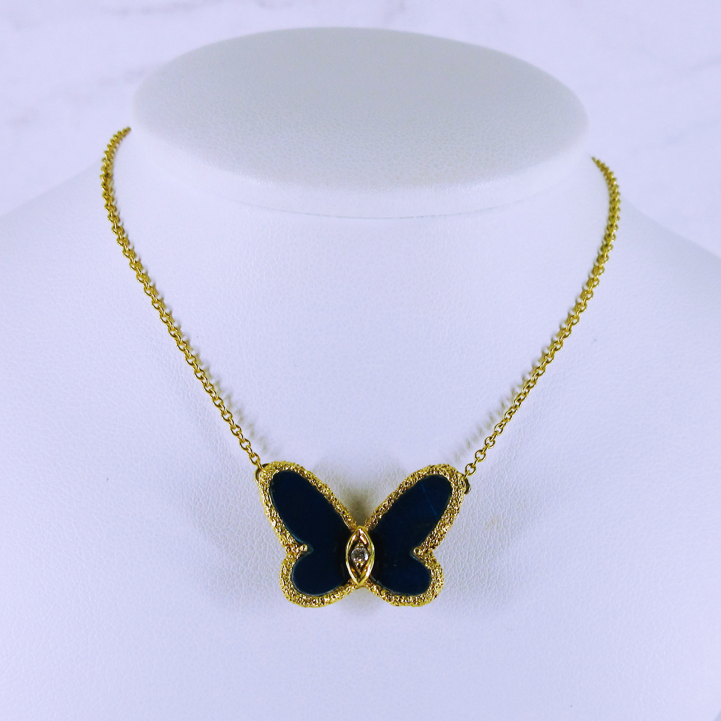 18K Yellow Gold 17″ Chain with Butterfly Pendant and Diamond