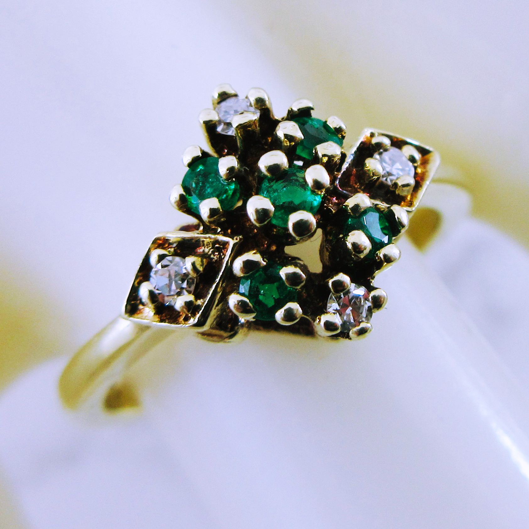 14K Yellow Gold Emerald and Diamond Ring