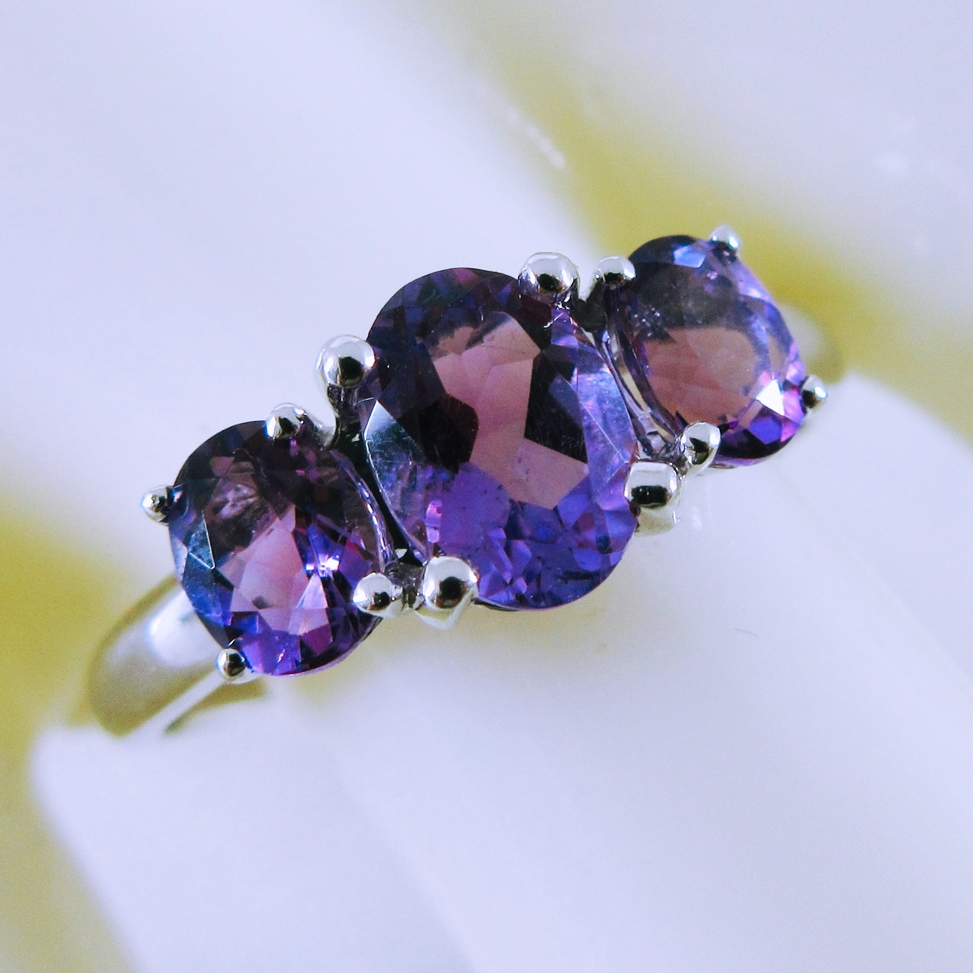 10K White Gold 3-Stone Amethyst Ring