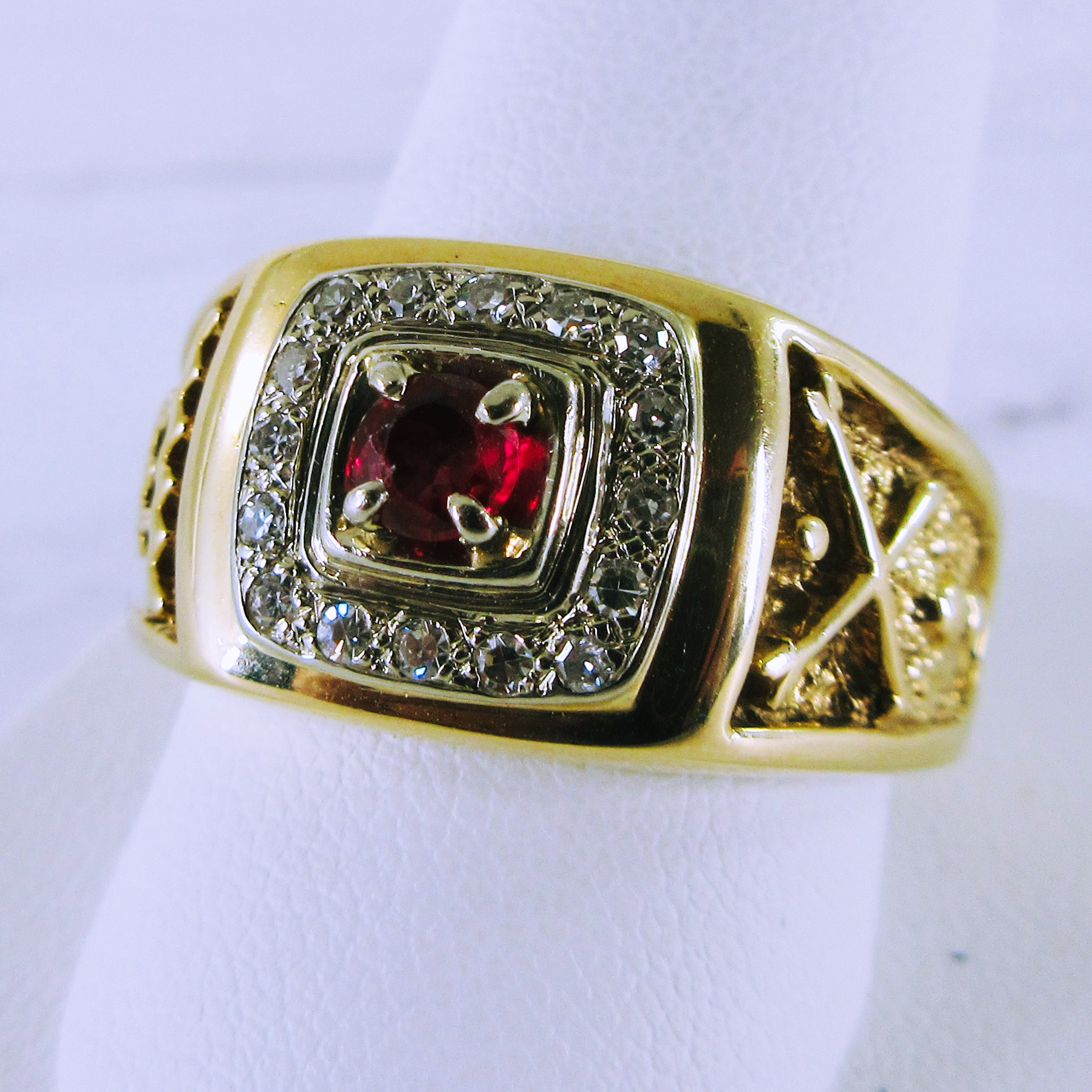 Men’s 14K Yellow Gold Ruby and Diamond Ring