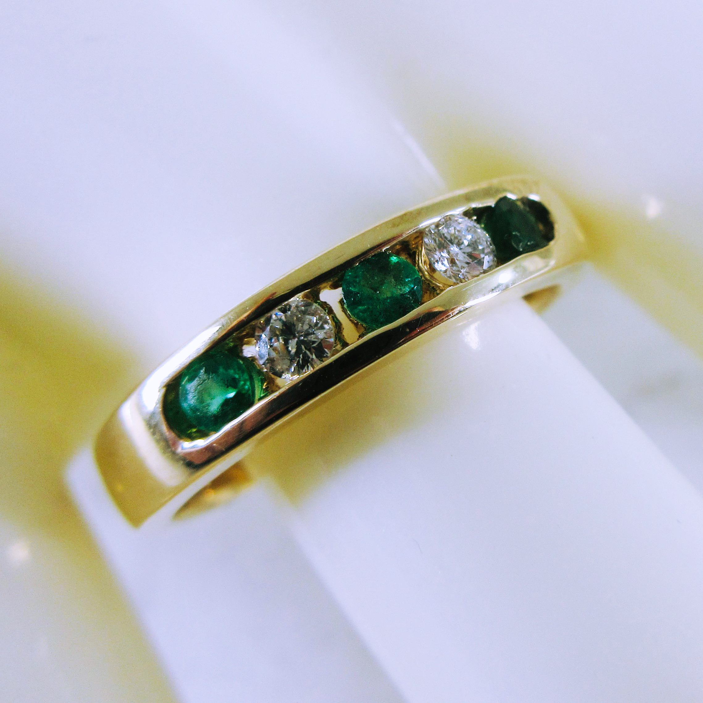 14K Yellow Gold Emerald and Diamond Channel Set Wedding Band
